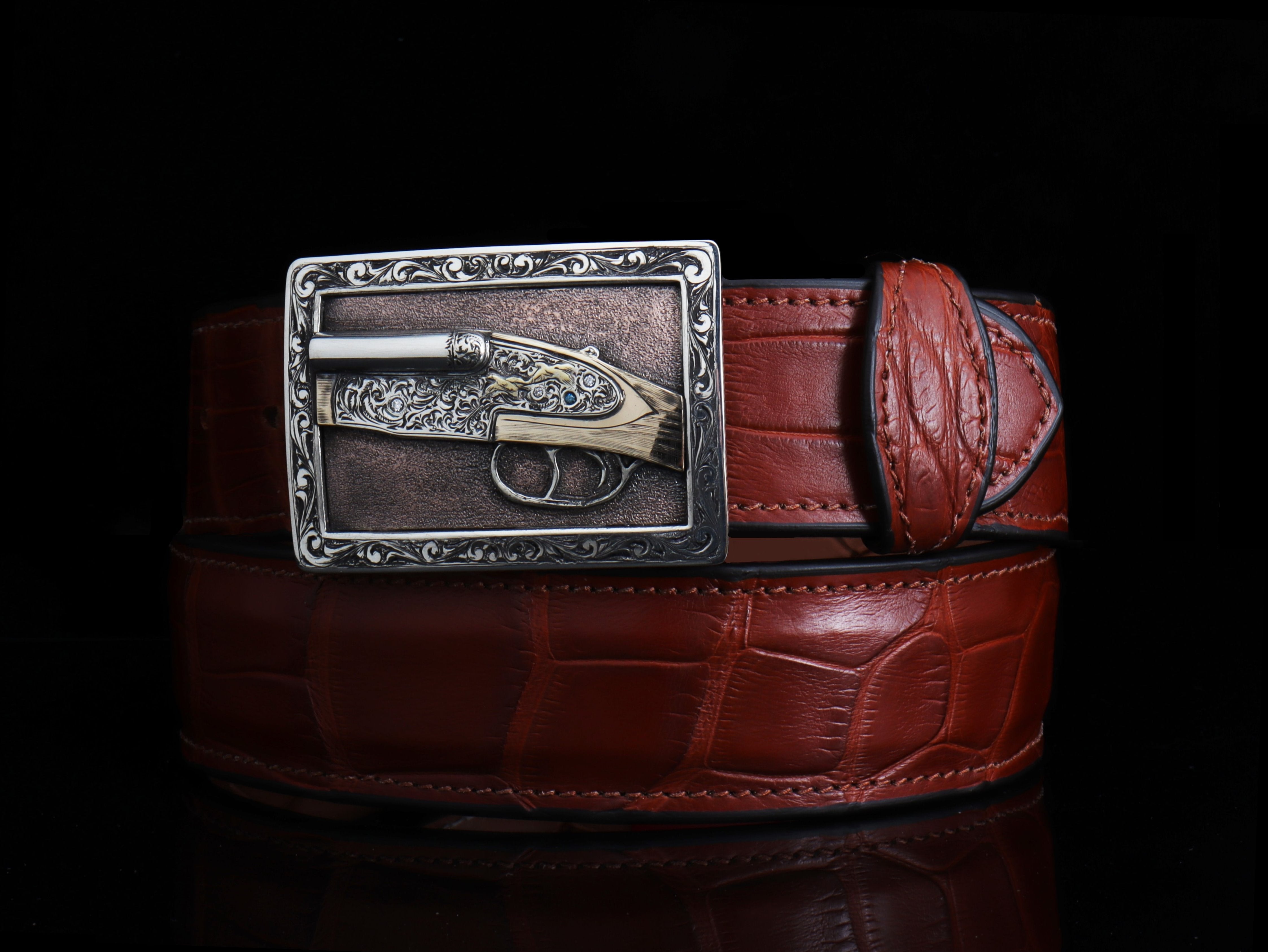 Our belts are also hand crafted in the United States and while we try to keep a large stock, odd sizes and skins can take up to 8 weeks to make.
