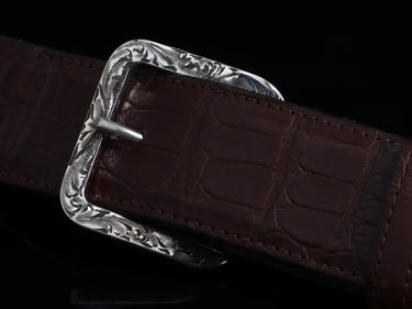 The BC-2 Belt Buckle by Comstock Heritage is part of the classic BC series—each one solid, hand-cast from Sterling silver and designed with an understated aesthetic. This version features our signature "Scroll" hand engraving throughout, adding a layer of traditional detail to the clean, timeless form. Whether paired with an exotic belt or worn more casually, it adapts with ease. Fits 1 ½" straps and can be completed with an optional matching keeper.