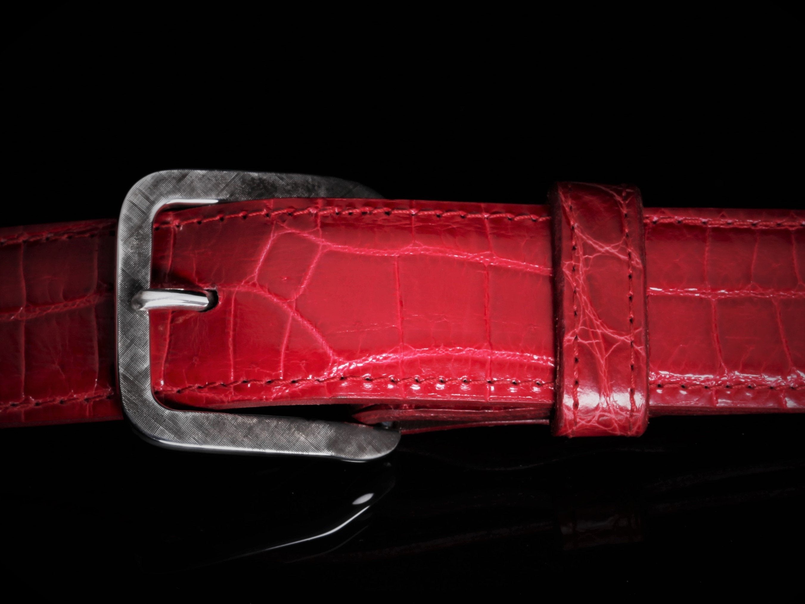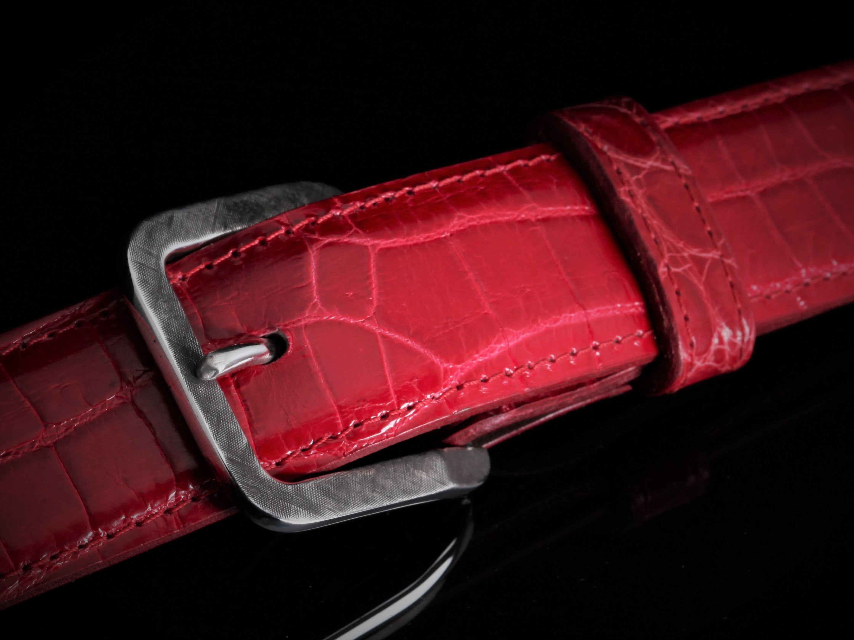 Our belts are also hand crafted in the United States and while we try to keep a large stock, odd sizes and skins can take up to 8 weeks to make.