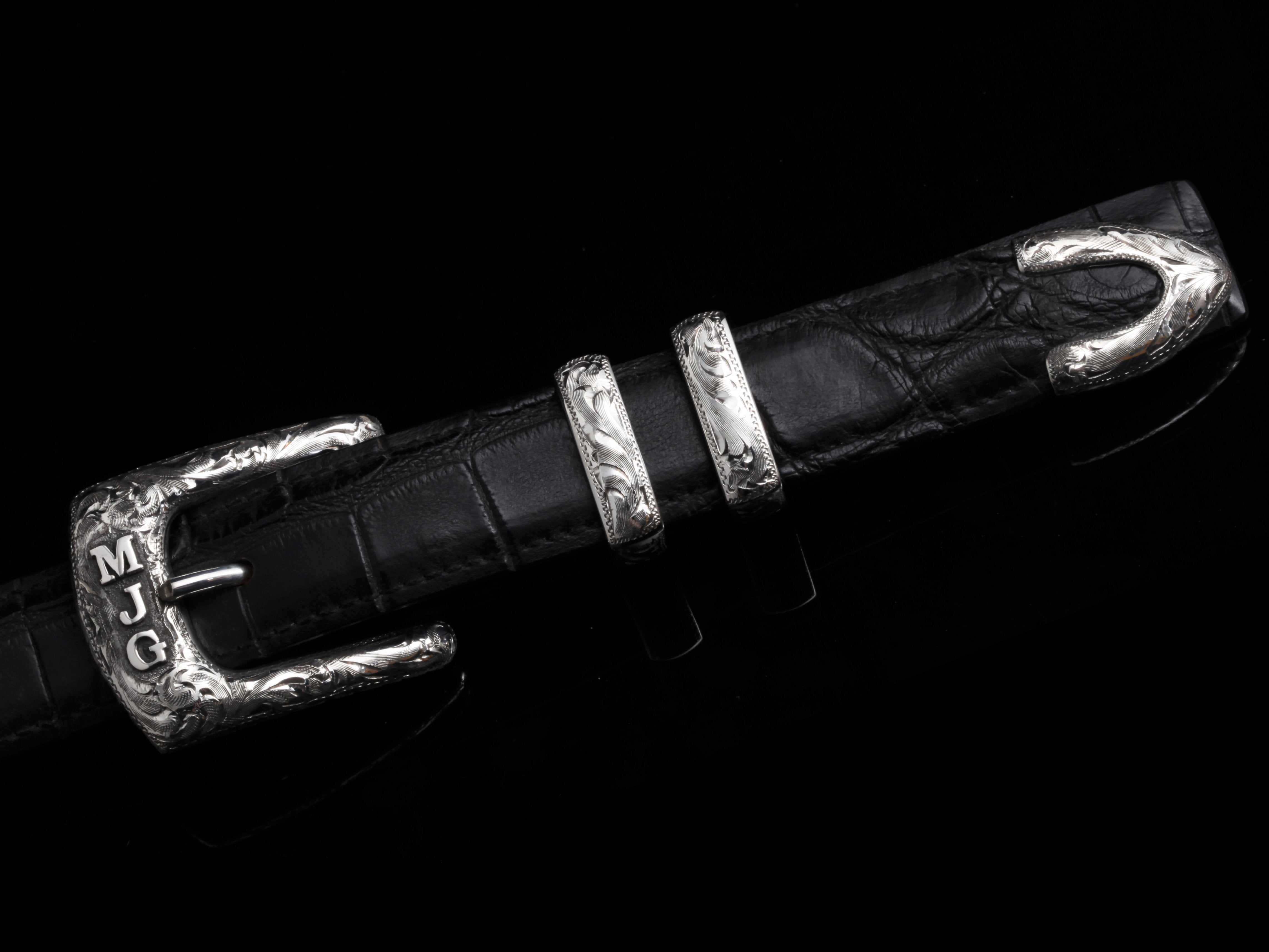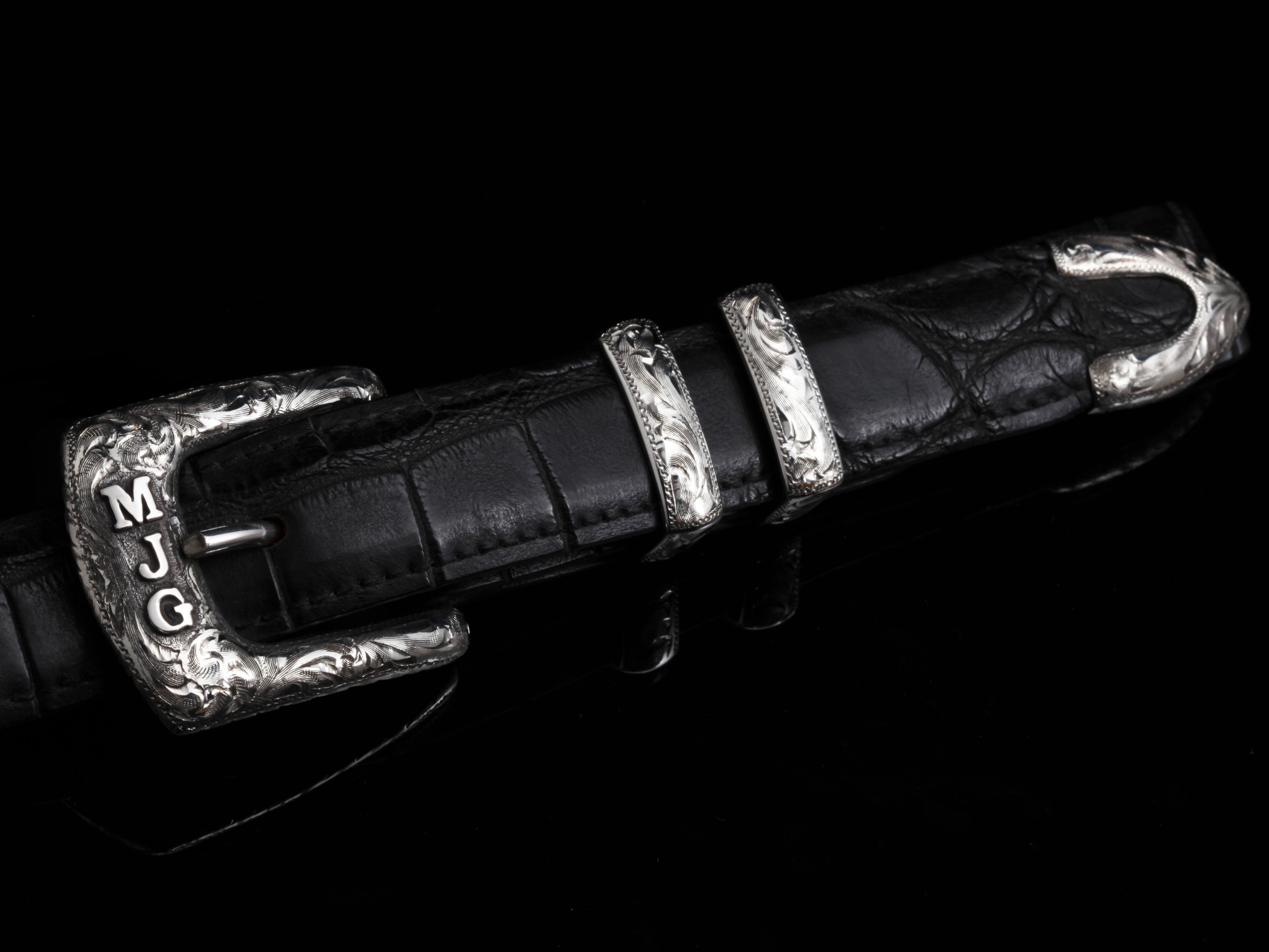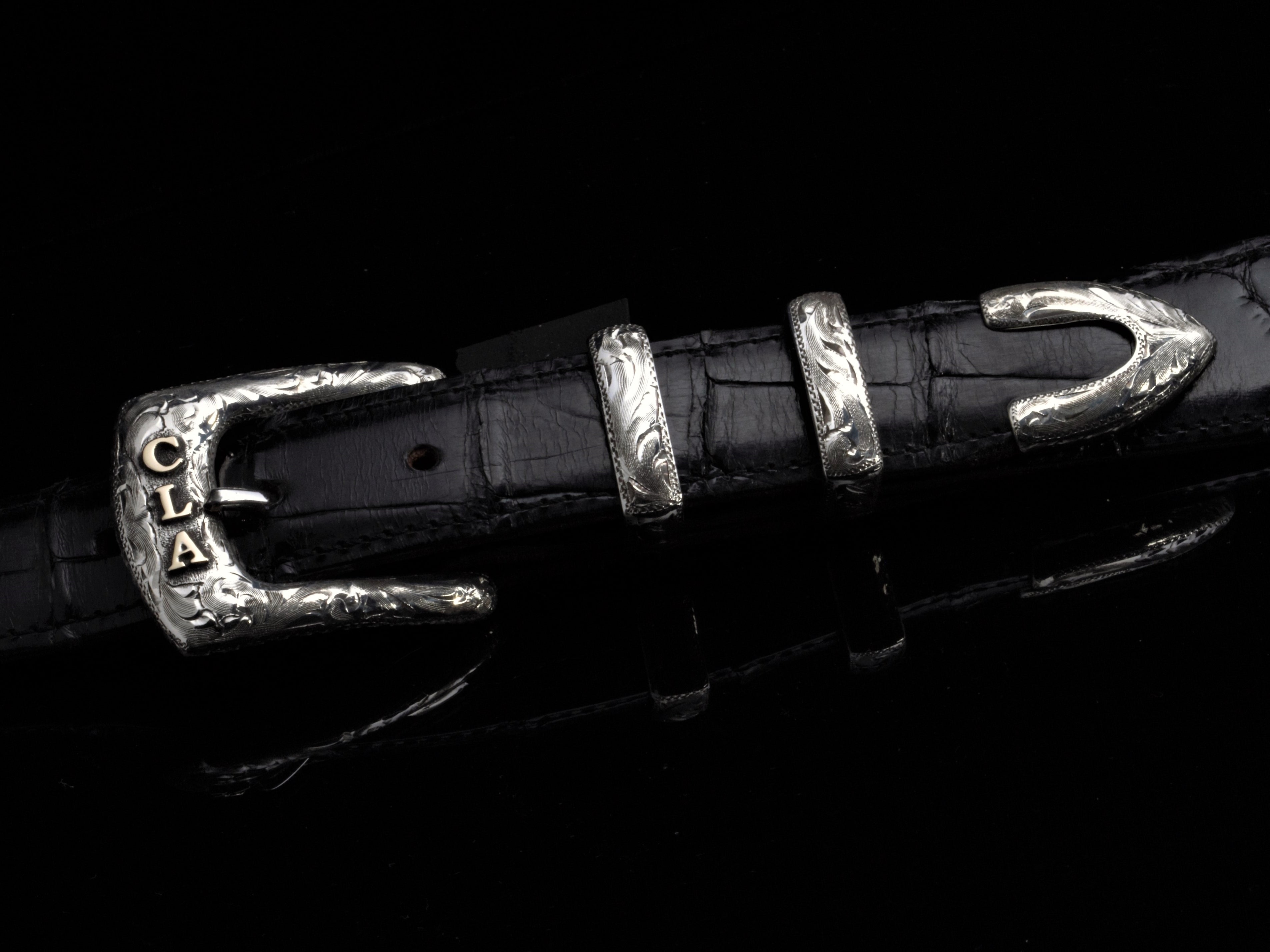 The C35 Scroll with Initials by Comstock Heritage is a hand cast 1" four piece buckle set that has been hand engraved with our scroll style Victorian engraving. Finishing this piece off it has been oxidized and then polished to give it a darker contrasting finish. The price includes three initials of your choice.